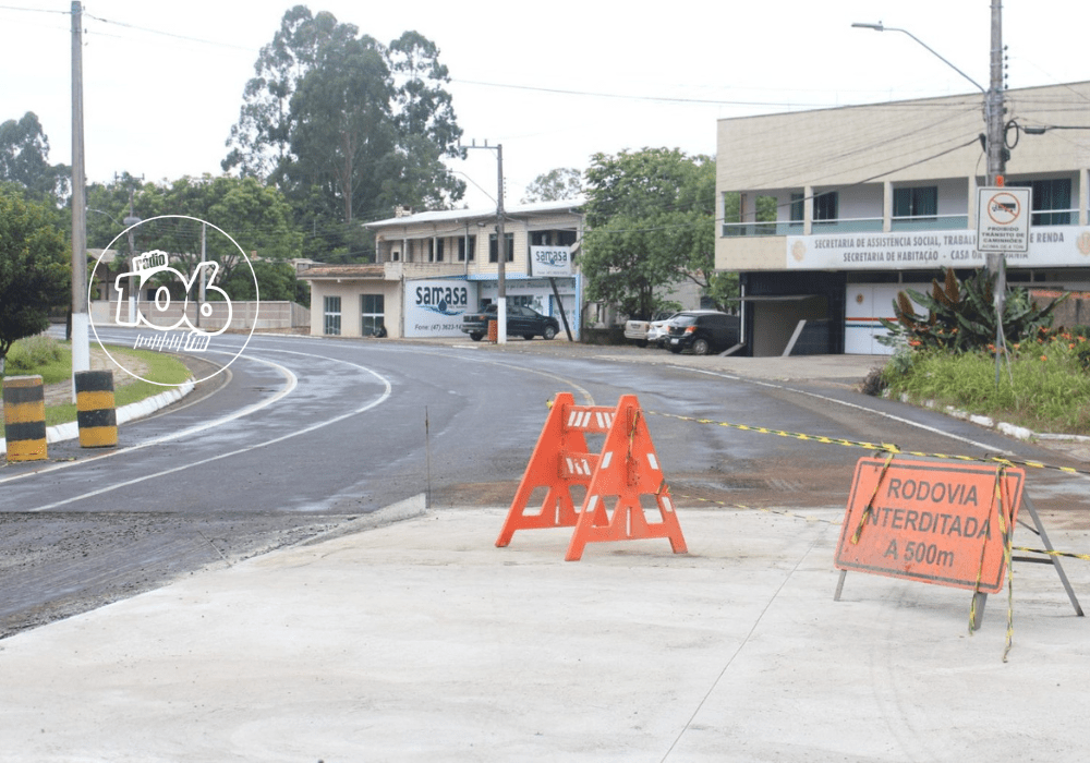 Por conta da nova etapa de aplicação de concreto rígido no pavimento da rotatória, o acesso ao centro de Três Barras, pela Avenida Rigesa, estará interditado a partir do trecho em frente ao Samasa. A interdição parcial inicia às 08h desta quarta-feira, 03 de janeiro.